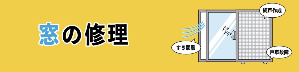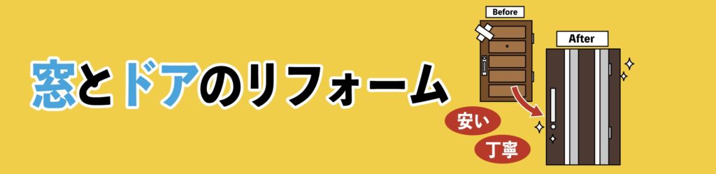 窓リフォーム、玄関ドア交換、勝手口ドア交換、浴室ドア交換、引戸リフォーム、内窓取付、窓シャッター取付、雨戸交換