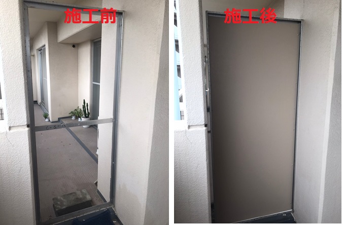 マンションの避難通路である隔壁板が割れてしまった場合、お隣さんの家までバルコニー伝いで繋がるのも困ったものですね。当社で修理可能です。